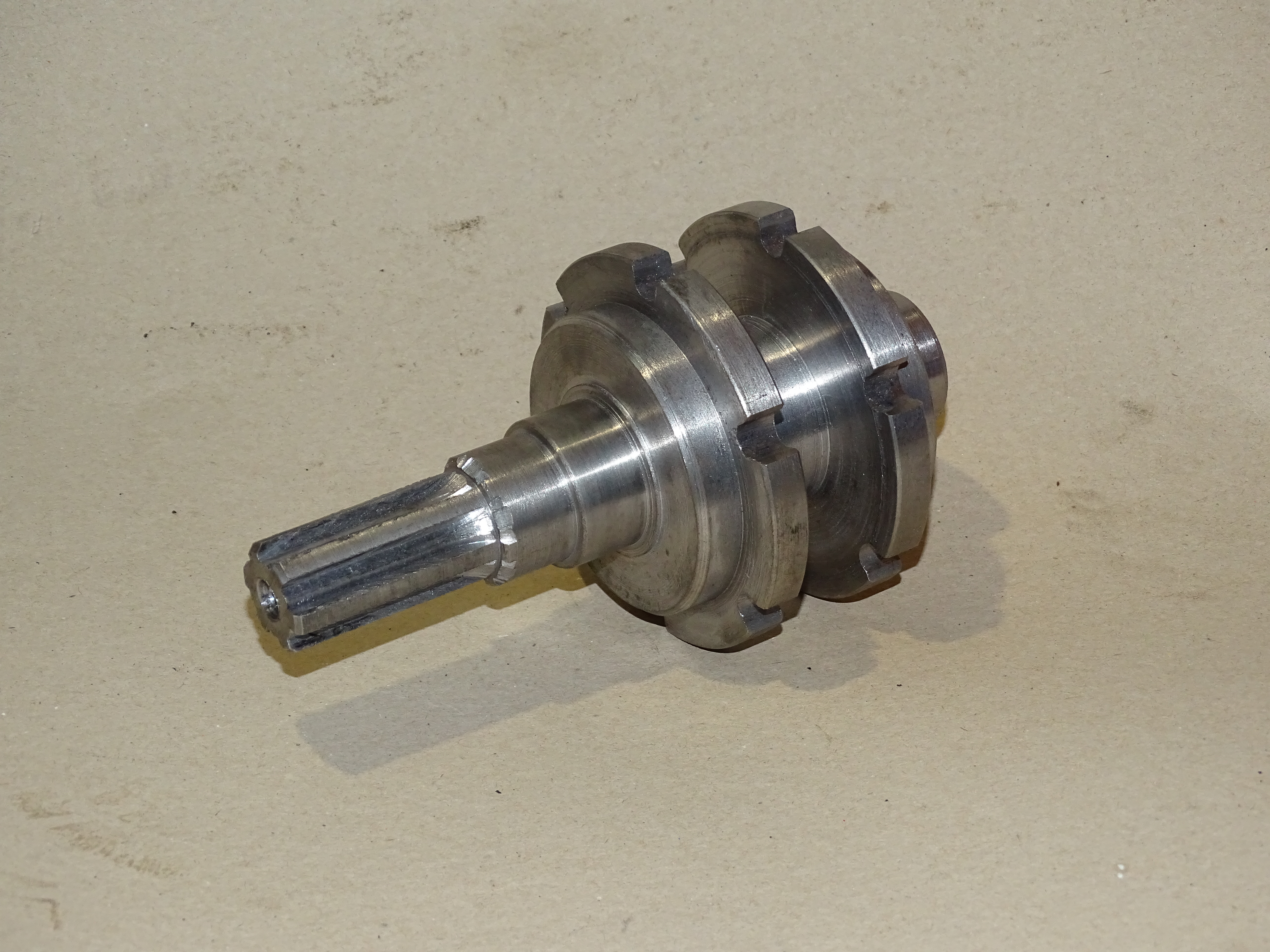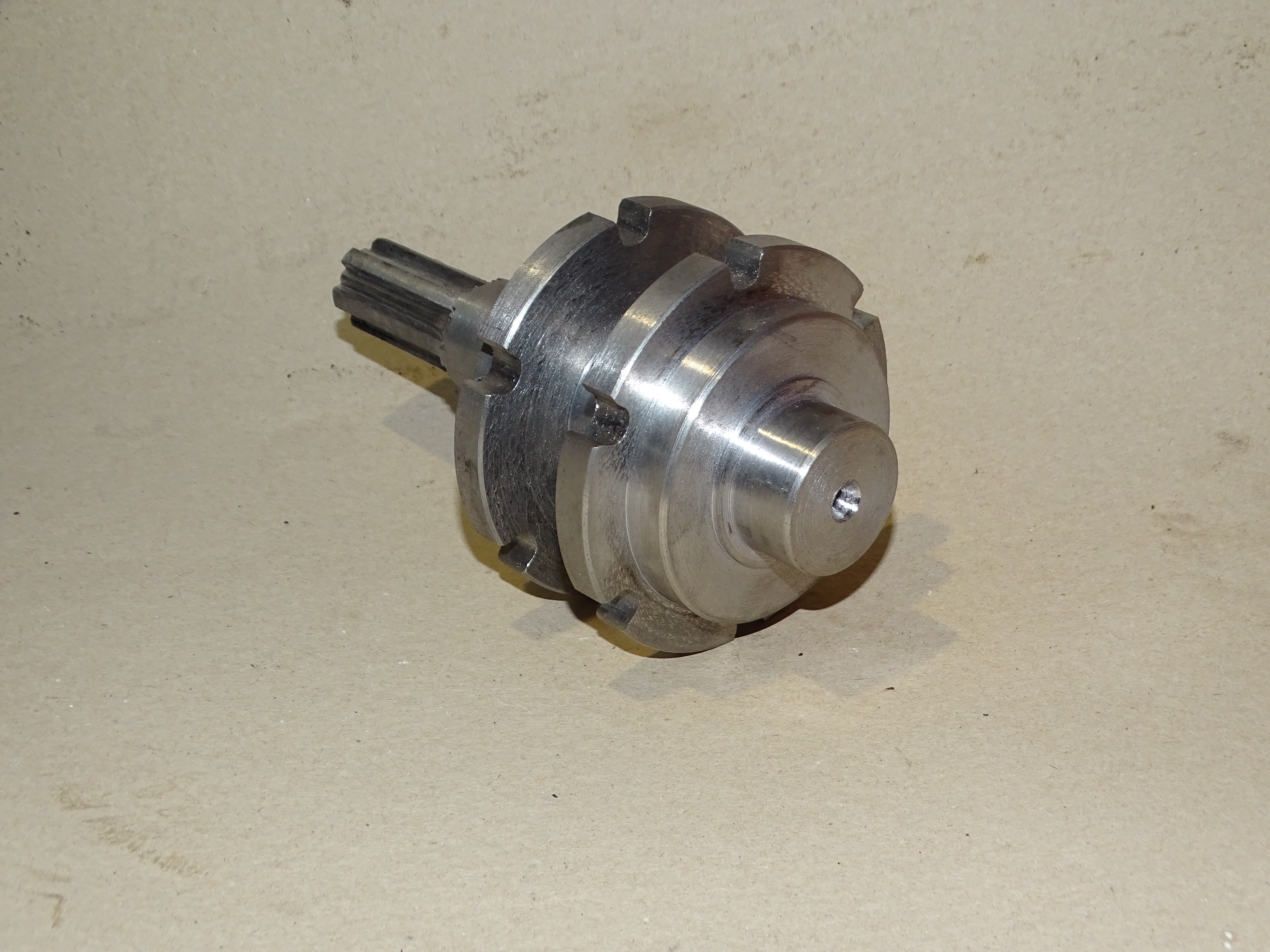 Кое что пришлось в этом году делать по трактору . Ремонтирую КПП ВАЗ , нужно реставрировать полусамодельный первичный вал , наверное металл был не очень и получили довольно приличный износ шлицов . Передачу выбивало только четвёртую , теперь и вторую , стало совсем не удобно работать . Так же перебираю реверс-редуктор "Муравейный" , вот такую красивую деталюгу мне выточили :
