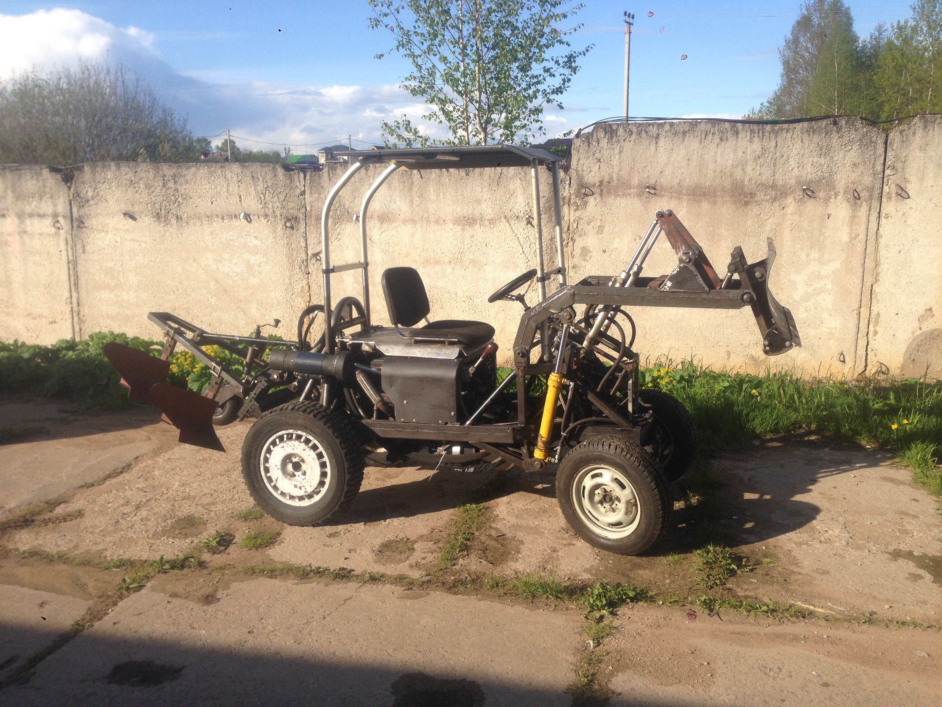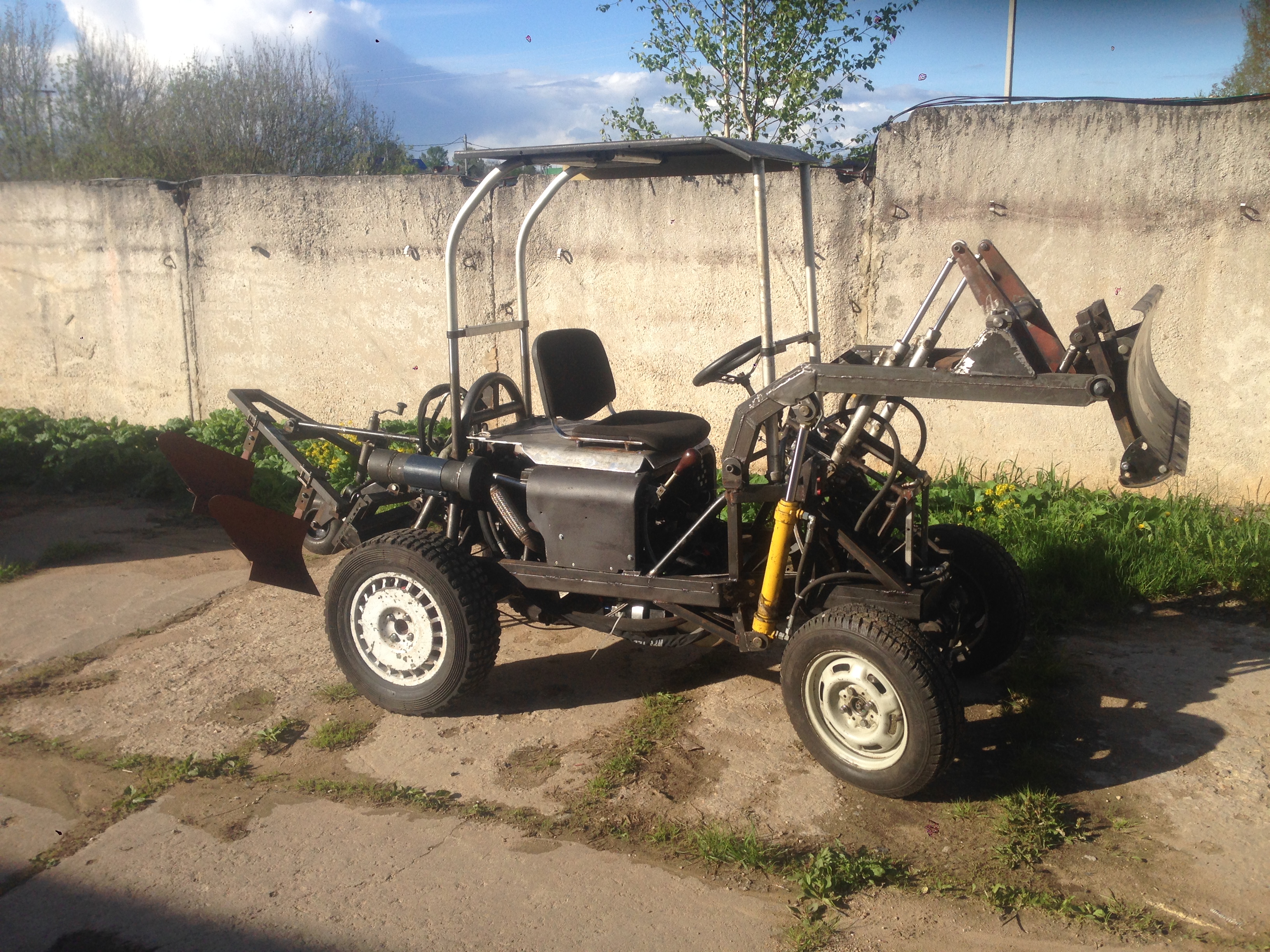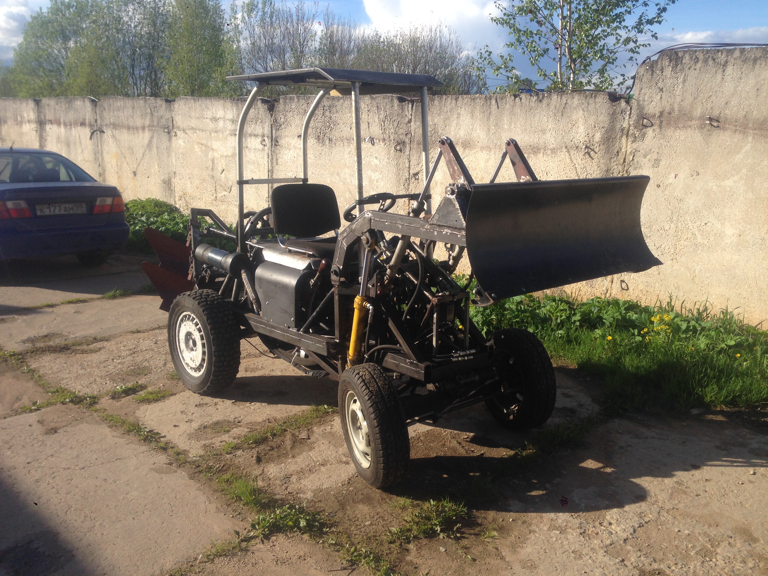 Задний мост жигули (если не развалится), передний - из девяточных задних ступиц, мотор+автомат - сузуки 600 кубиков, рама - пока 50мм профиль, буду усиливать, пока не вижу как. Рулевое - жигулёвская рейка (будет с электроусилителем) Гидравлика пока только в планах.