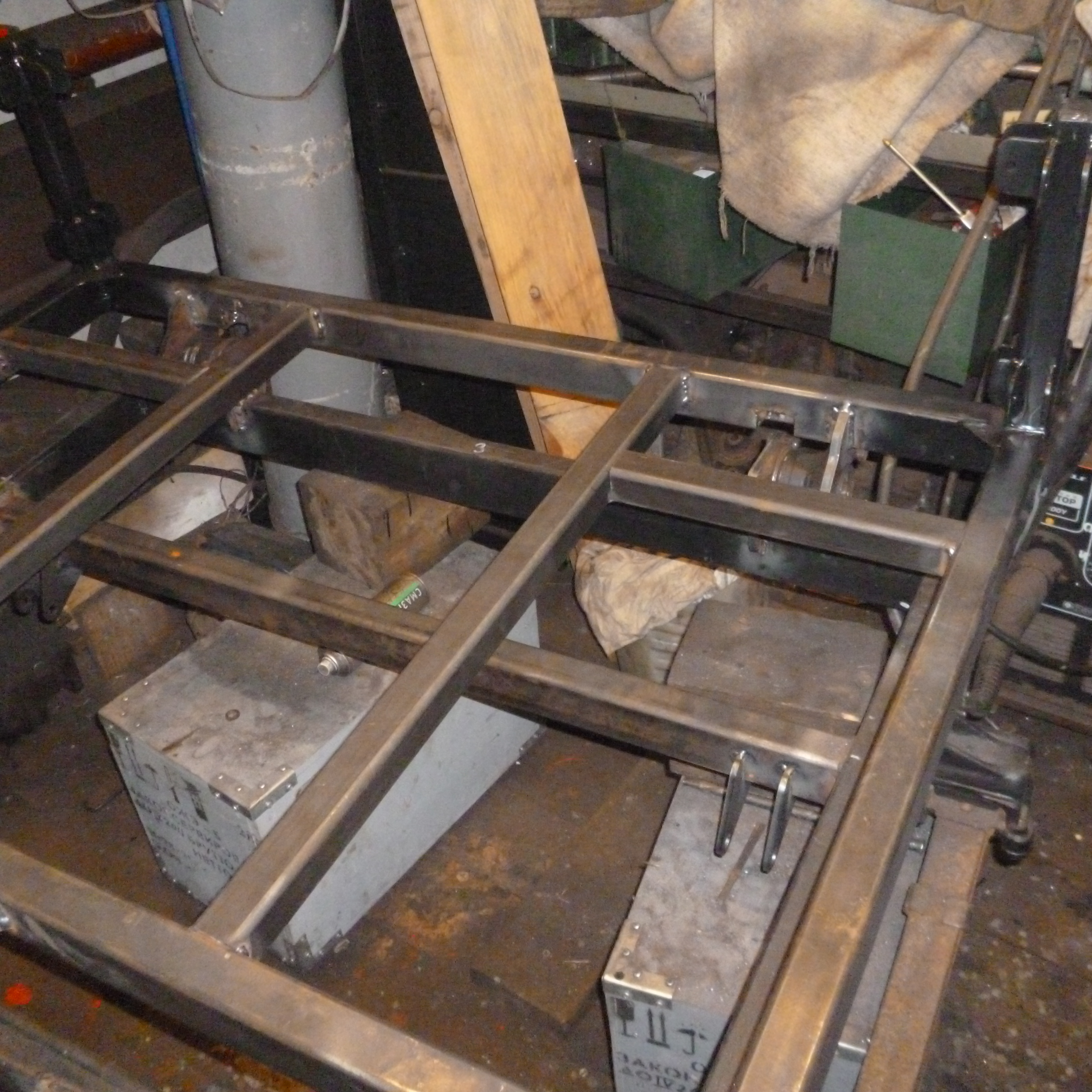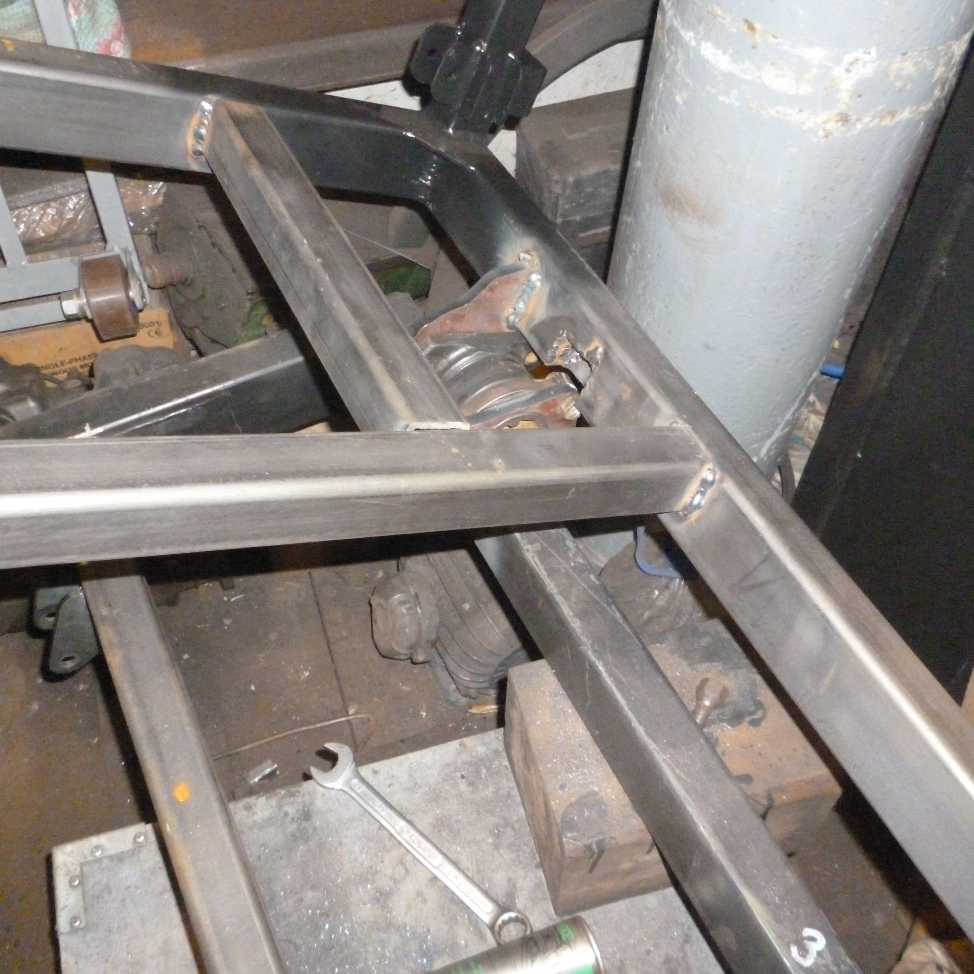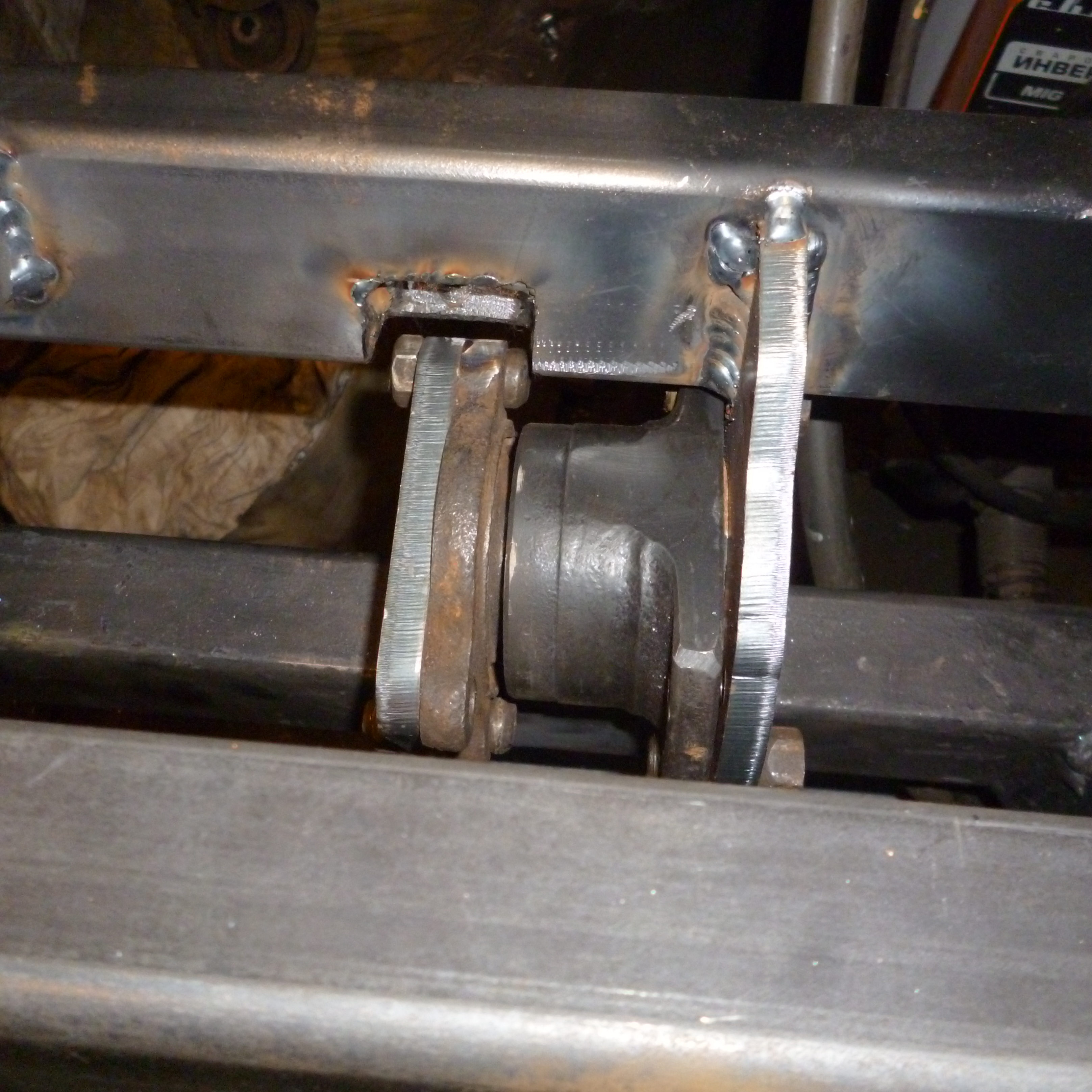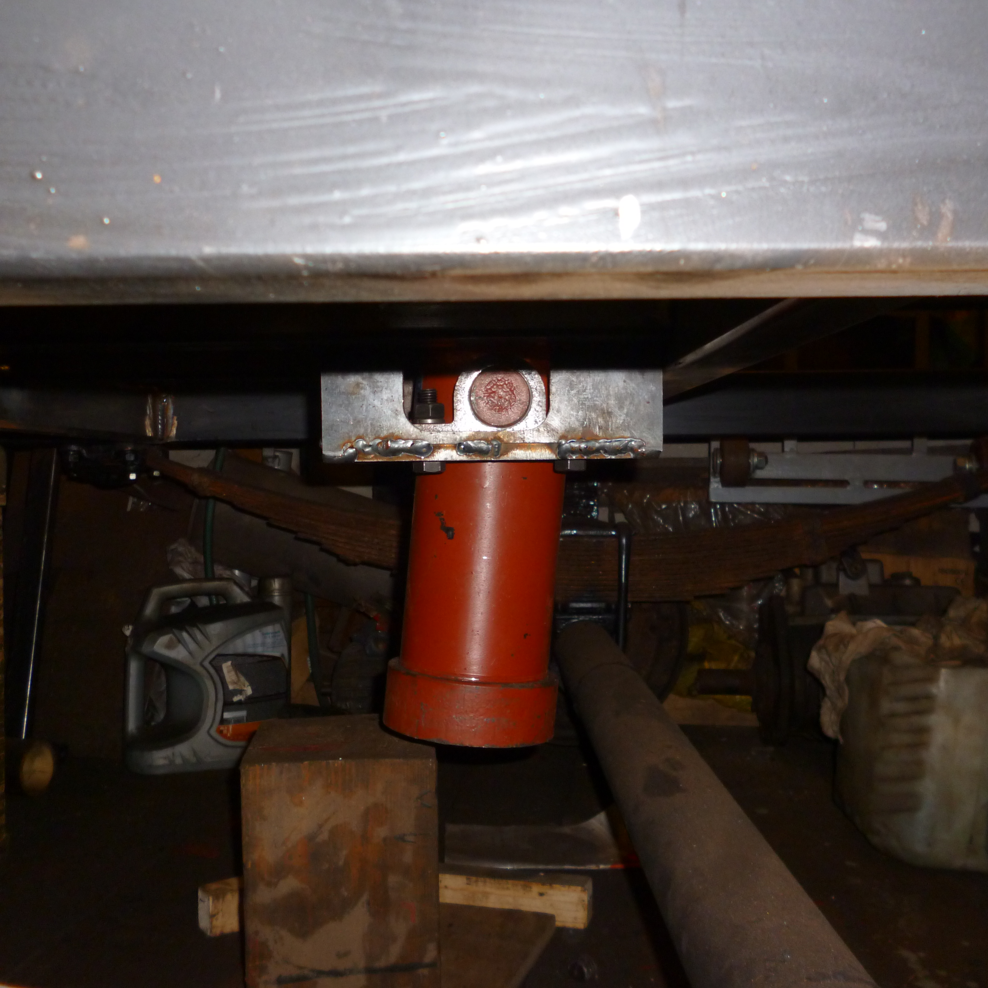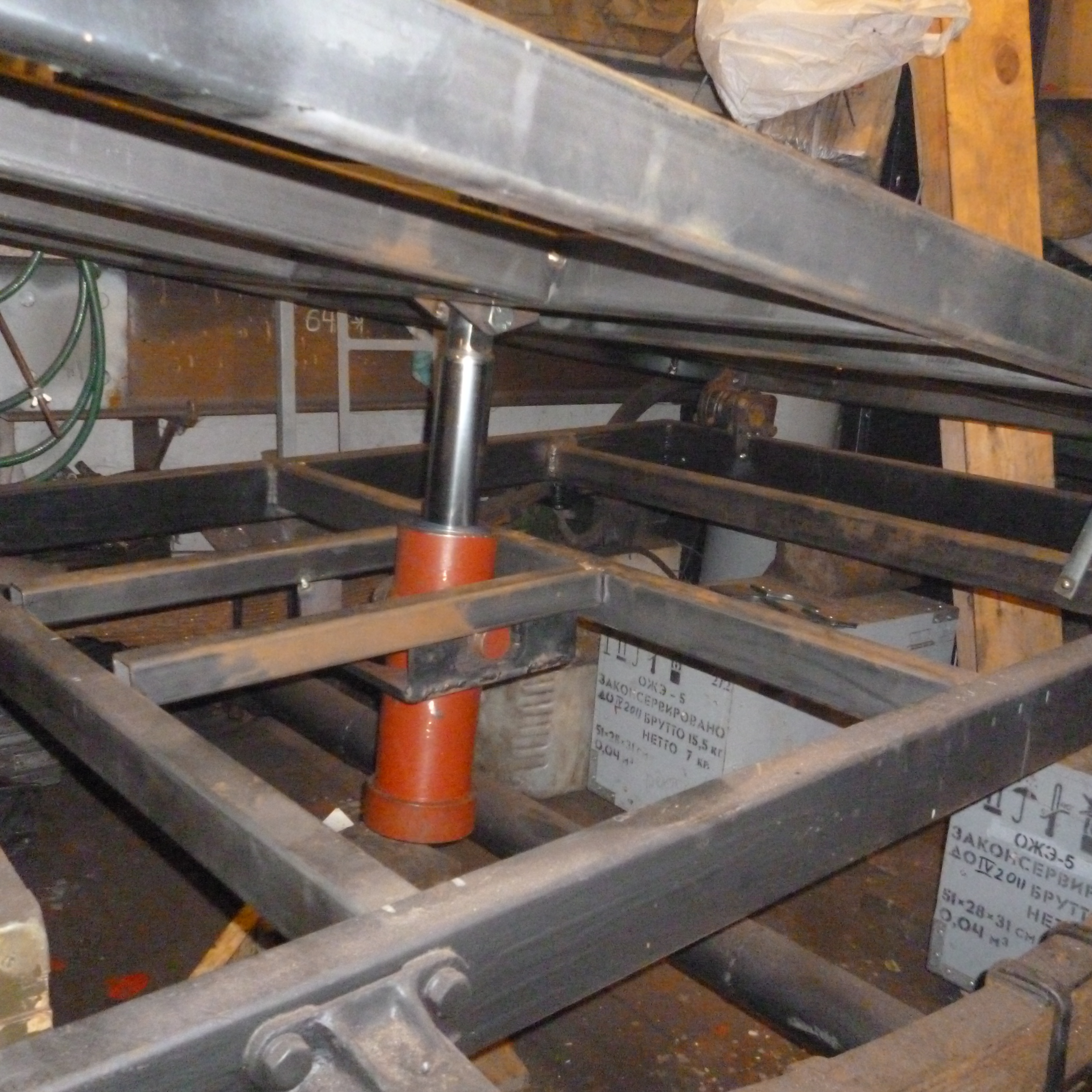 Без косяков не обошлось. Когда рисовал и шевелил картинку, то не заметил что при подъёме кузова труба упирается в кронштейн. Был выбор: либо срезать ухо на кронштейне, либо вырезать кусочек трубы. Решил пойти по второму пути. Так как основная труба стала послабже, то усилил раму кузова дополнительными трубами.